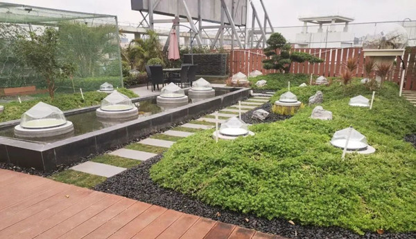 在光导照明系统内部安装夜间补光装置,利用光伏蓄能发电照明。此做法可避免重复安装电力照明系统,方便而又美观。